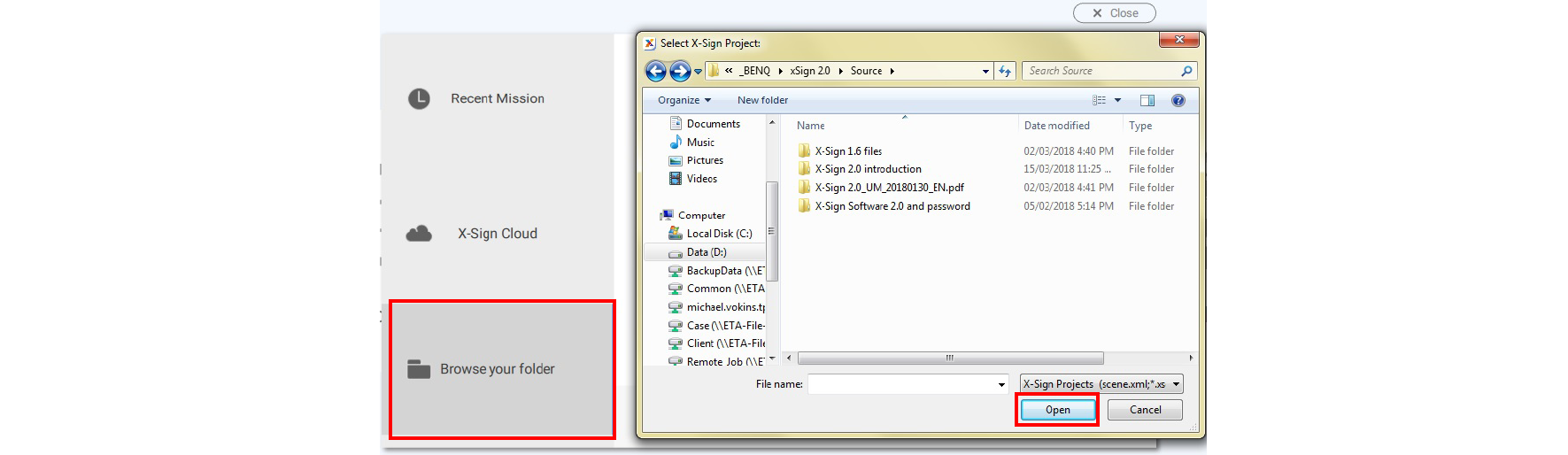 To open an X-Sign Designer 1.x project:
