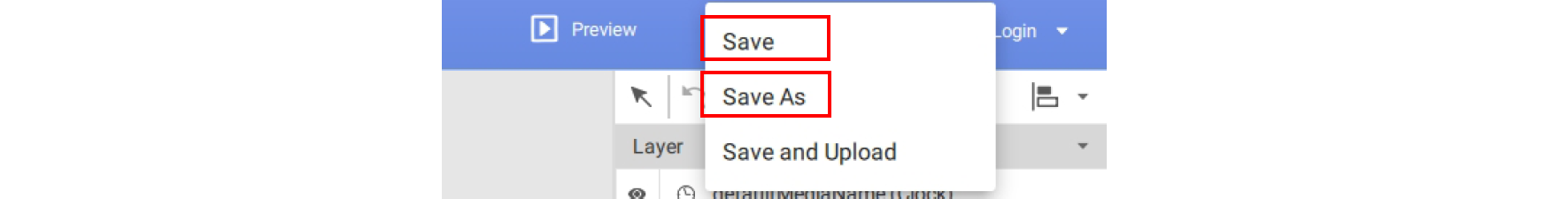 3. Once opened in X-Designer, X-Designer 1.x project files will be automatically saved to a 2.x project file. To save the project as an X-Sign Designer 2.x file, click either the Save or Save As button in the top right corner (You can also select File > Save or File > Save As).