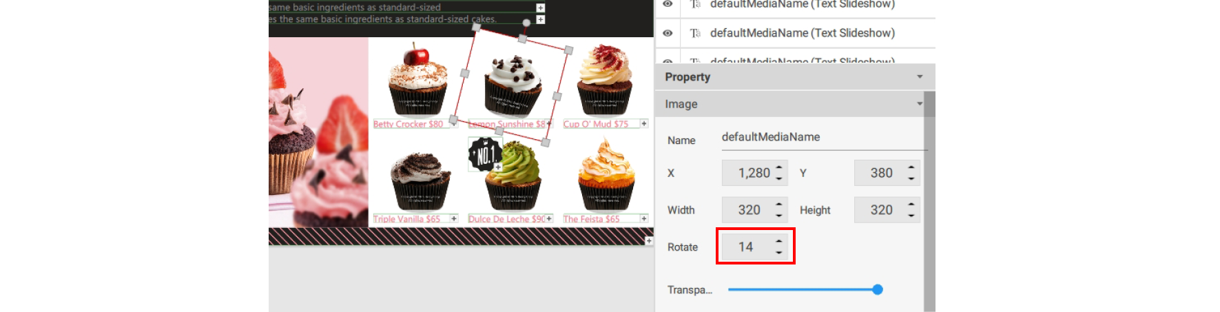 2. You can also rotate an image or video by manually changing the value in the Image or Video panel.