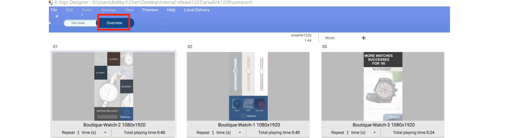 1. Open the project you want to change to the interactive content, then select Overview mode.