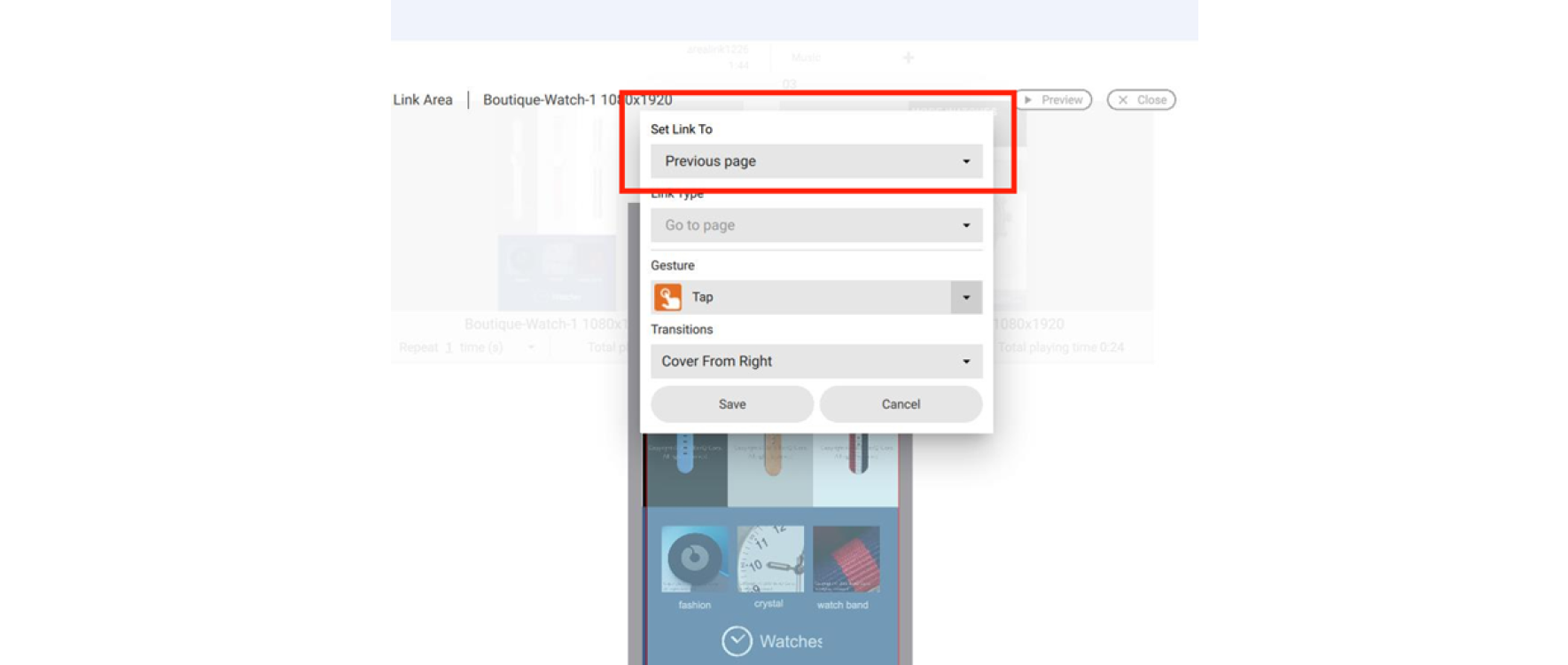 B. Set the link effect. You can go to the link page directly or to the link page overlapping the original one.