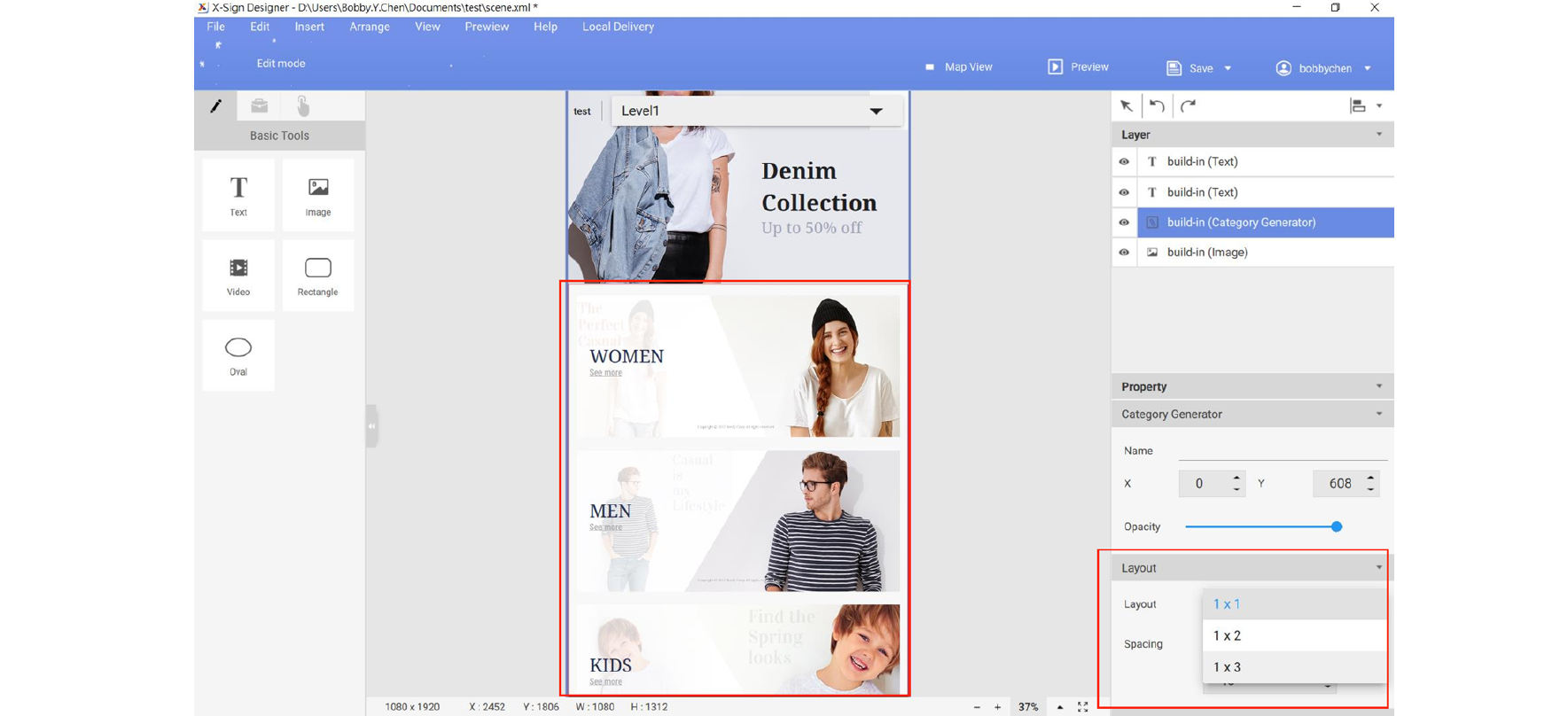 5. On Layout page (Level X), click Category Generator to change the layout.