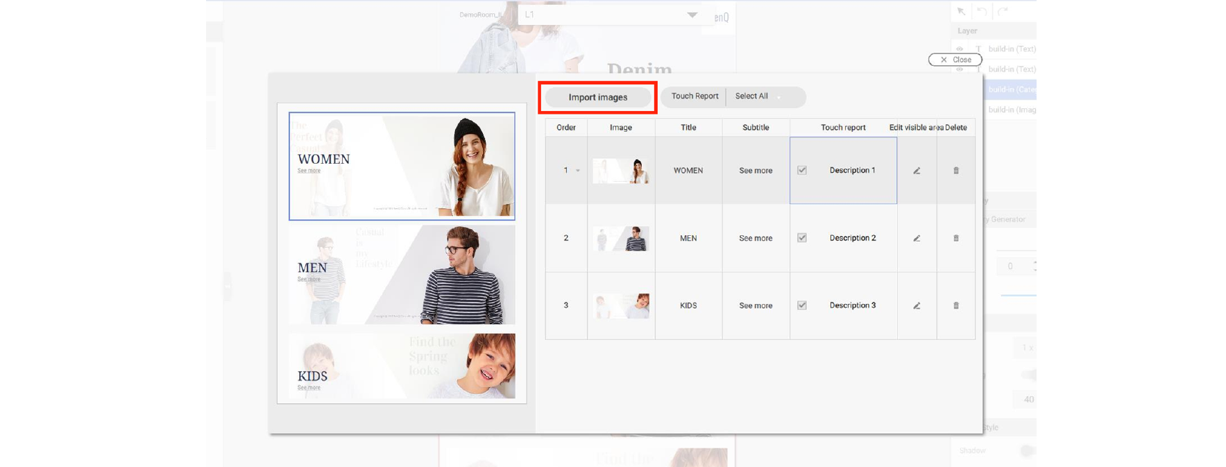 6. On Content page (LX), double click Import images to import the content to Category Generator.