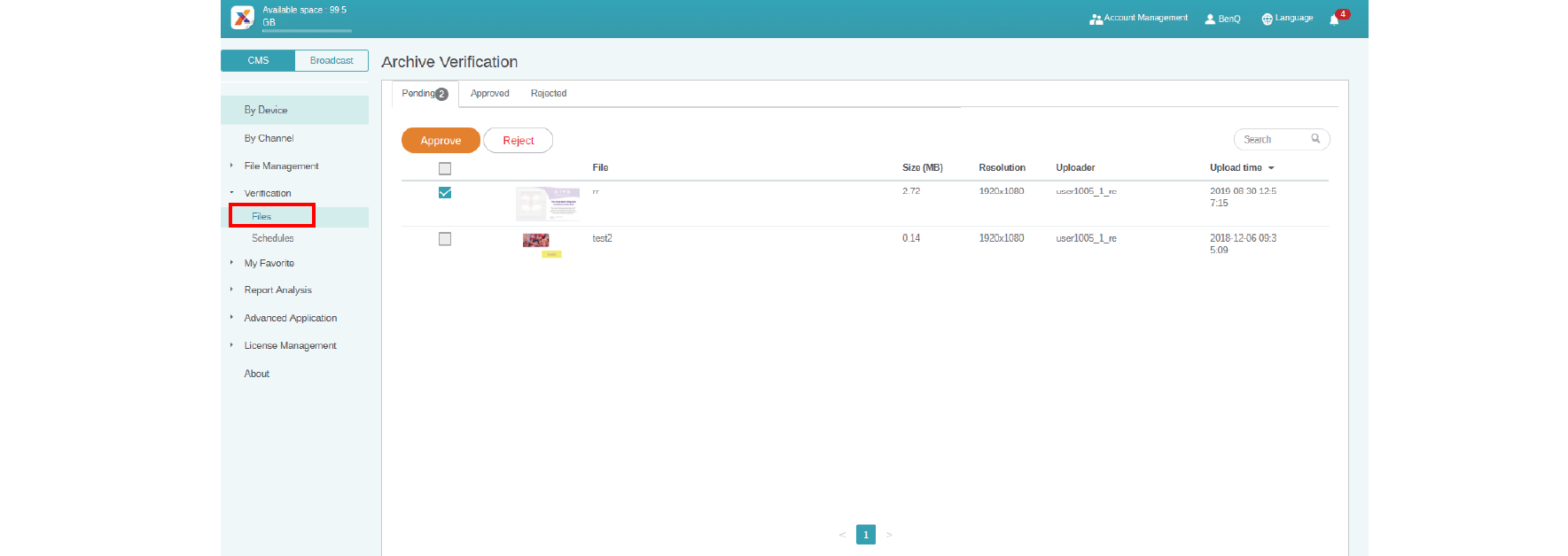 Before a file is delivered publicly, it has to be checked by the administrator. Only when the administrator clicks Approve can the file be added to the schedule.
