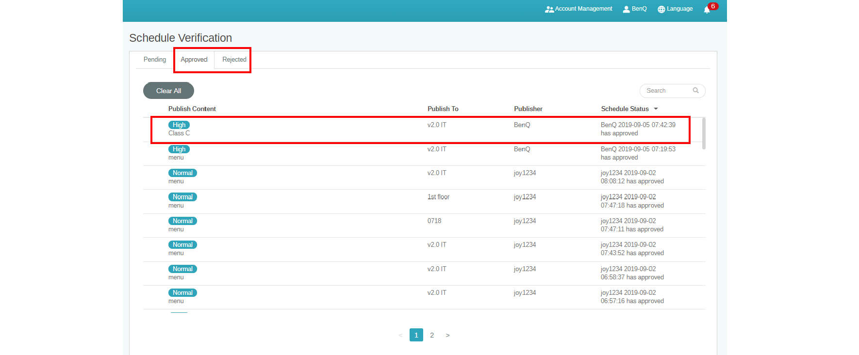 2. Select the schedule to be approved or rejected, then click Approve or Reject.