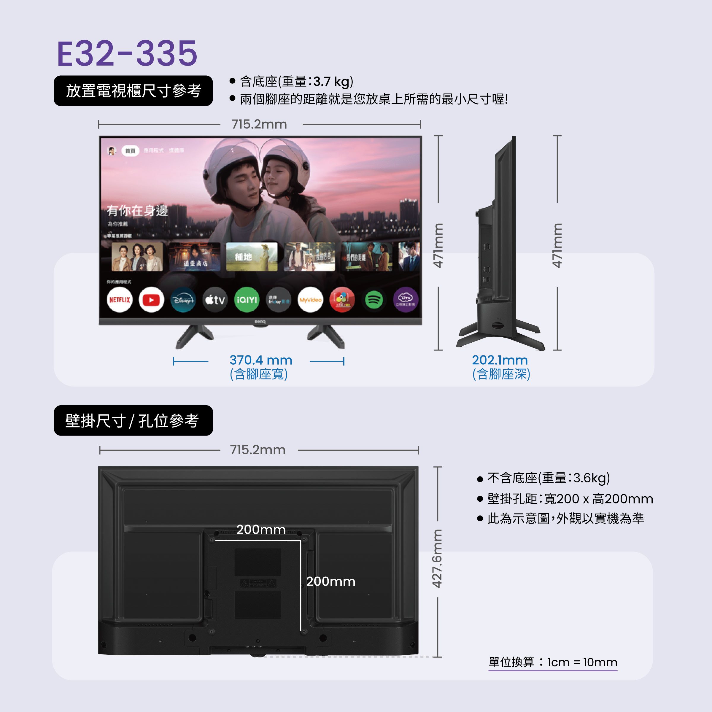 ● 若您只有購買壁掛施工服務 : 請您於送貨前將您的壁掛架準備好,送貨當天物流人員會將您事先準備好的壁掛架連同主機一起幫您壁掛施工,內容包含:將壁掛架釘上牆面、掛上電視、接上電源、點亮確認。